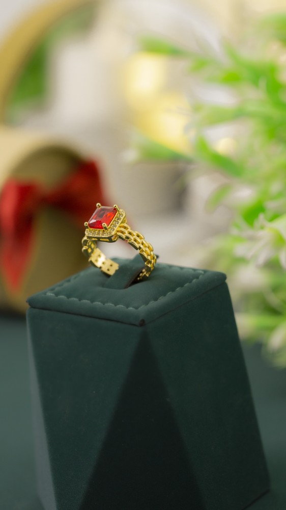 إذا كنت تبحث عن خاتم يخطف الأنظار ويجمع بين الفخامة والسعر المناسب، فخاتم بديل الذهب بفصه الأحمر المربع هو الخيار اللي يكمّل أناقتك بكل ثقة.
