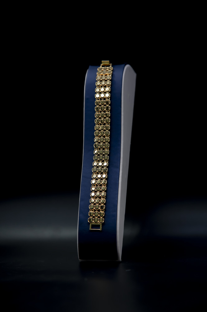 - يتميز السوار بتصميم سداسي متناسق يعطي مظهر أنيق وفخم، يضيف لمسة فريدة لأي إطلالة سواء كانت رسمية أو كاجوال.